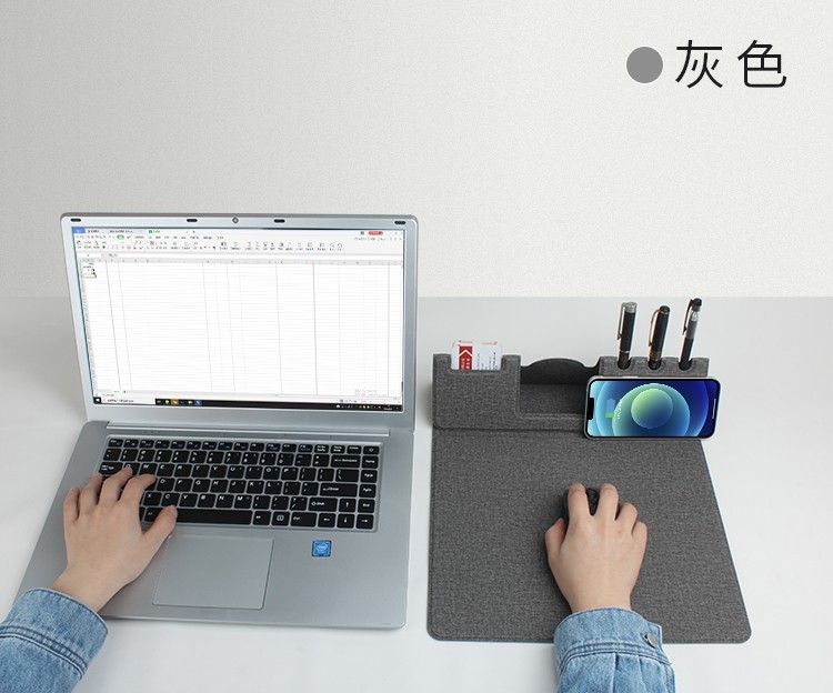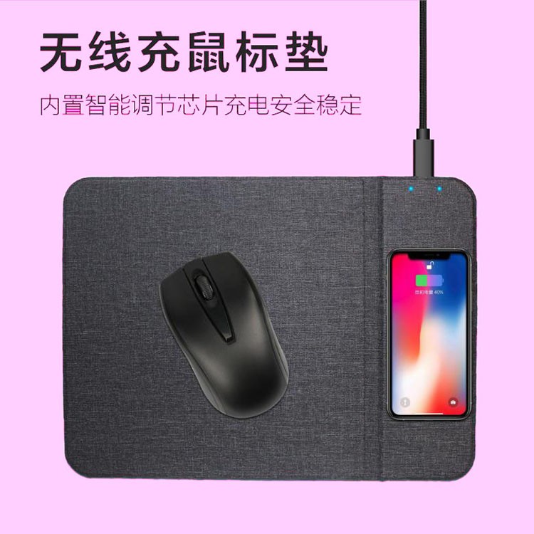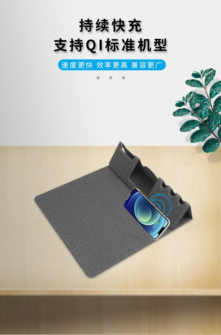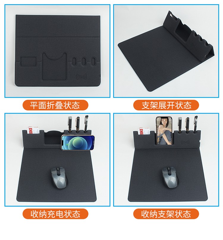 折疊支架款無(wú)線充電鼠標(biāo)墊可定制 布紋超薄無(wú)線充鼠標(biāo)墊可印LOGO