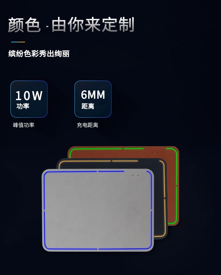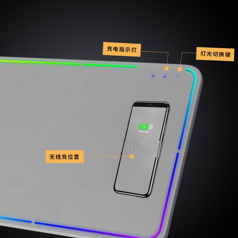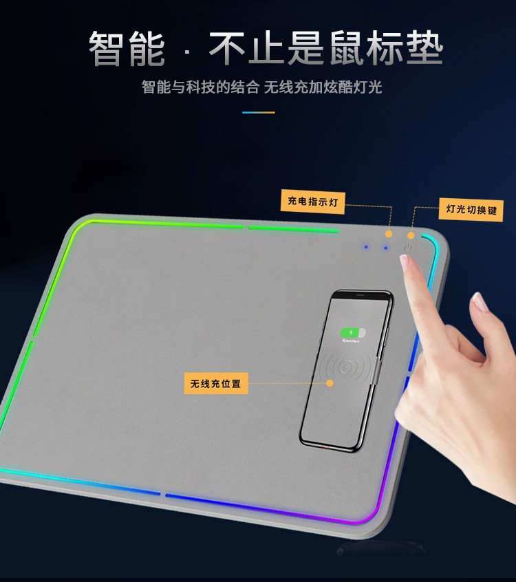 方形發(fā)光無線充鼠標墊