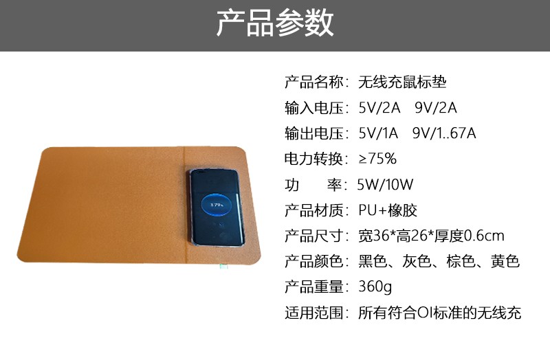 純色皮革6mm厚一體無線充支持來圖定制