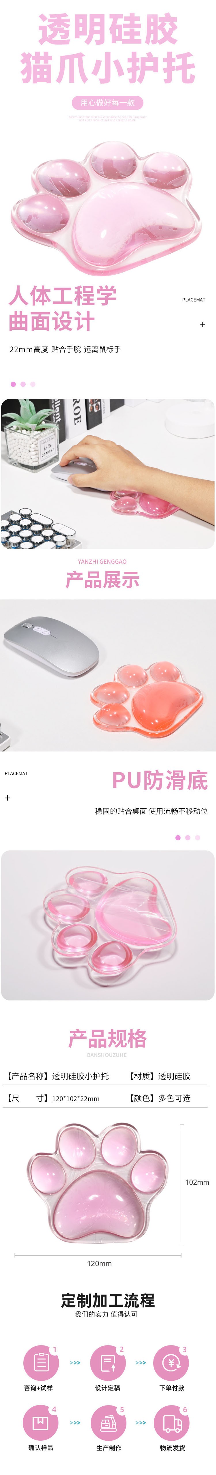 小號(hào)貓爪透明硅膠護(hù)腕墊