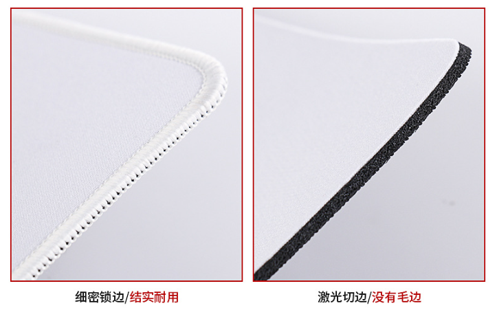 3、鼠標墊可以選擇鎖邊和不鎖邊,鎖邊鼠標墊經(jīng)過細密的針織,不僅美觀好看,而且結實耐用;